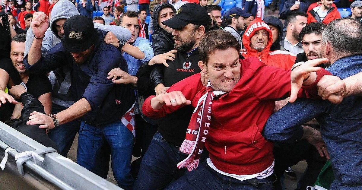 Сразу после начала матча игру пришлось прервать на 8 минут из-за протеста фанатов против частных инвесторов.