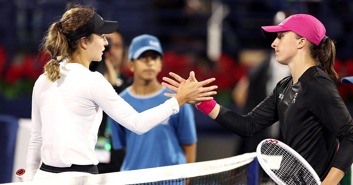 WTA выложила лучшие моменты полуфинала турнира в Дубае. Анна Калинская обыграла Игу Швентек – 6:4, 6:4.