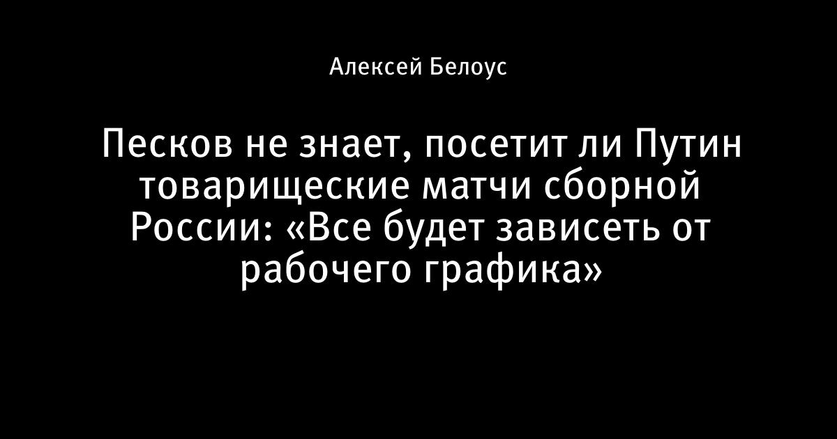 «Еще не знаю, посетит ли Владимир Путин товарищеские матчи сборной России по футболу, все будет зависеть от рабочего графика», – сказал пресс-секретарь президента РФ.