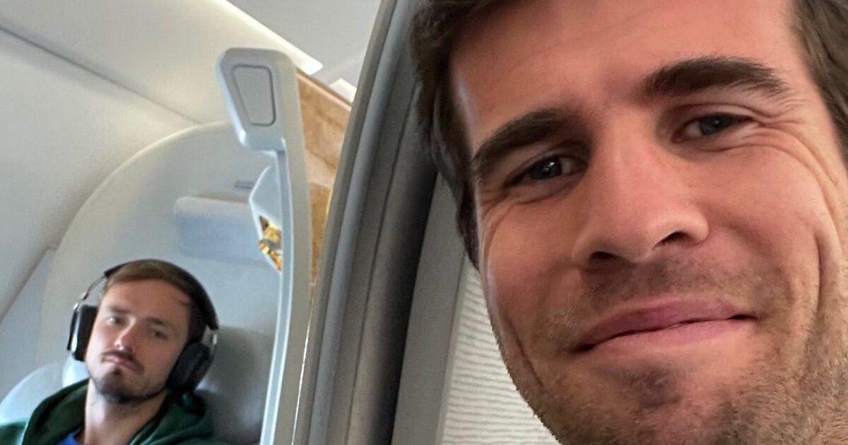 Карен Хачанов поделился фотографией с Даниилом Медведевым. Они вместе летят на «Мастерс» в Индиан-Уэллс.