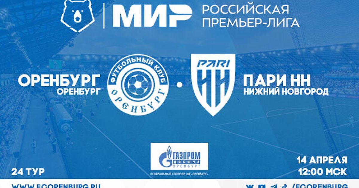 В 24 туре Мир РПЛ «Оренбург» принимает «Пари НН». Матч пройдет в воскресенье 14 апреля, в 14:00 по местному времени на стадионе «Газовик».