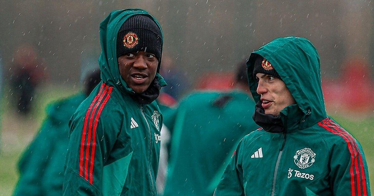 Клуб сегодня опубликовал фотографию Кобби Майну и Алехандро Гарначо, тренирующихся во время дождя в капюшонах.