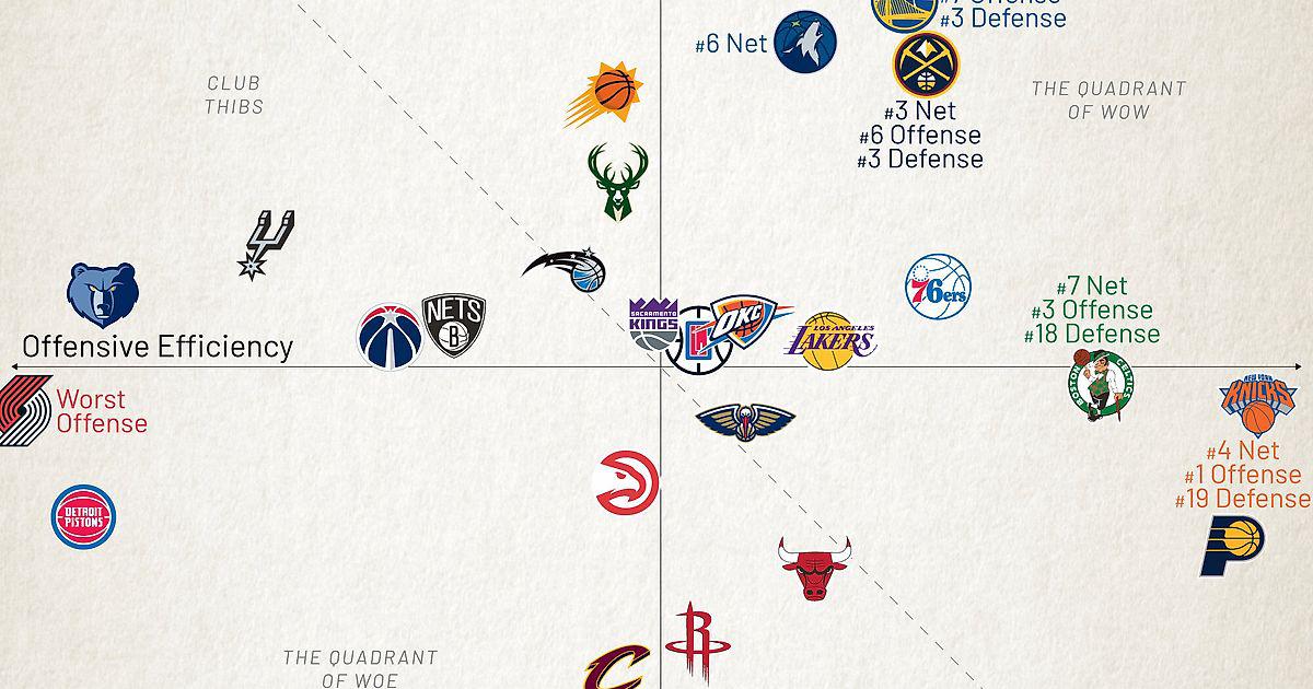 Баскетбольный аналитик Кирк Голдсберри обновил график эффективности команд за последние 10 игр