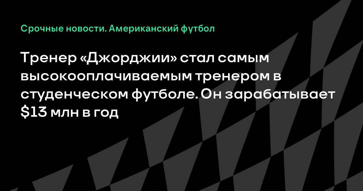 Тренер «Джорджии» стал самым высокооплачиваемым тренером в студенческом футболе. Он зарабатывает $13 млн в год