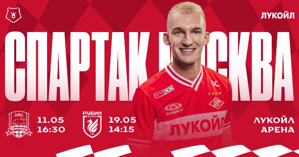 В 28 туре Мир РПЛ «Спартак» принимает «Краснодар». Матч пройдет в субботу, 11 мая, в 16:30 на стадионе «ЛУКОЙЛ Арена».