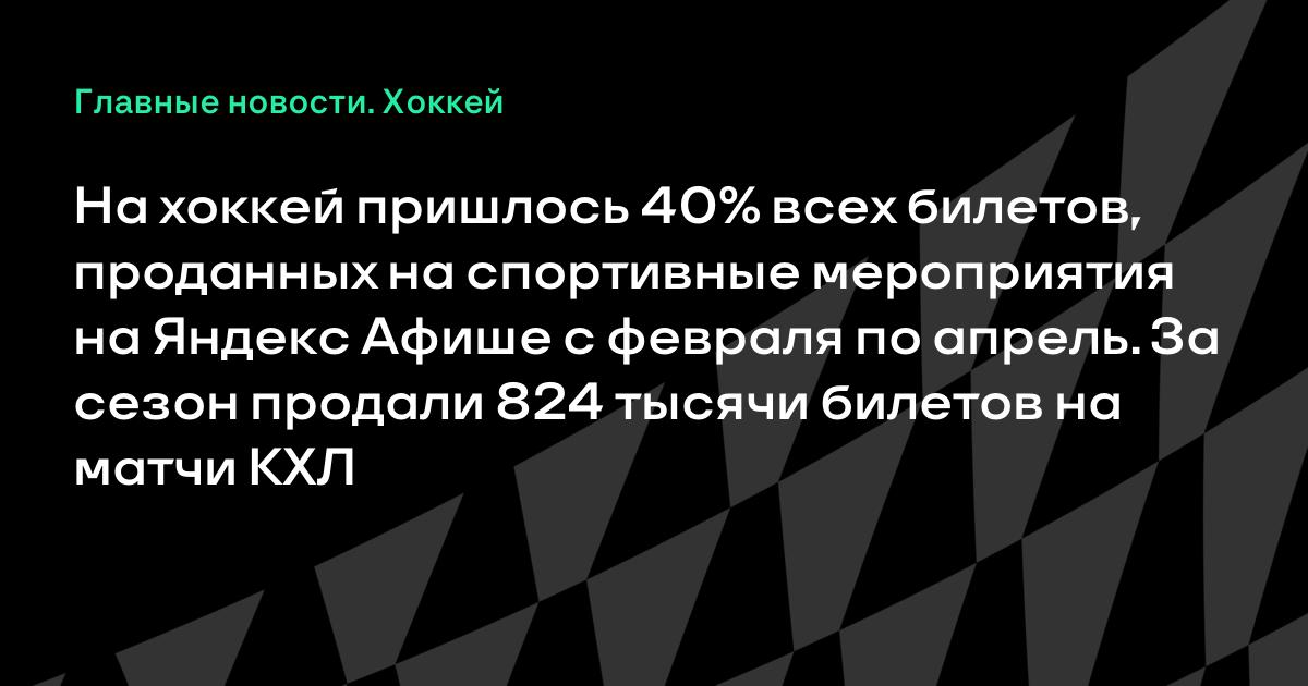 На хоккей пришлось 40% всех билетов, проданных на спортивные мероприятия на Яндекс Афише с февраля по апрель. За сезон продали 824 тысячи билетов на матчи КХЛ