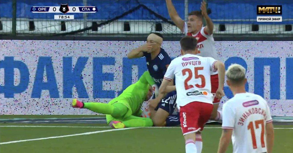 В матче 30-го тура Мир РПЛ между «Оренбургом» и «Спартаком» (0:0) Перес ногами задел голову Максименко – в ответ вратарь красно-белых ударил соперника кулаком в пах. Момент был изучен с помощью ВАР, но судья Сергей Иванов решил не удалять Максименко и показал ему желтую карточку.