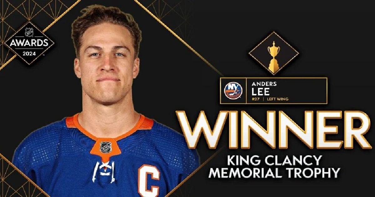 Нападающий «Айлендерс» Андерс Ли стал обладателем «Кинг Клэнси Трофи».