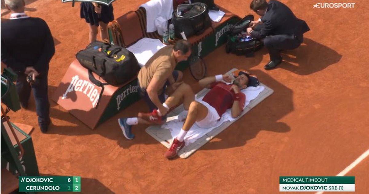 Новак Джокович взял медицинский перерыв в четвертом круге «Ролан Гаррос» против Франсиско Серундоло. Это произошло при счете 6:1, 1:2.