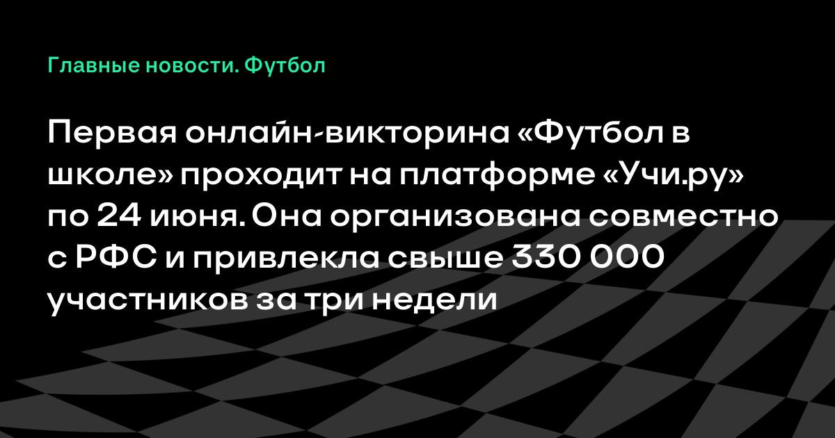 Первая онлайн-викторина «Футбол в школе» проходит на платформе «Учи.ру» по 24 июня. Она организована совместно с РФС и привлекла свыше 330 000 участников за три недели