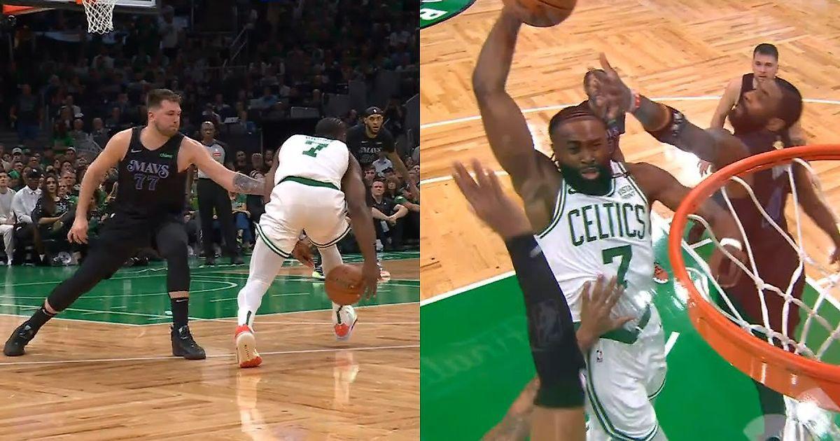 Джейлен Браун исполнил эффектный данк в первом матче финальной серии.