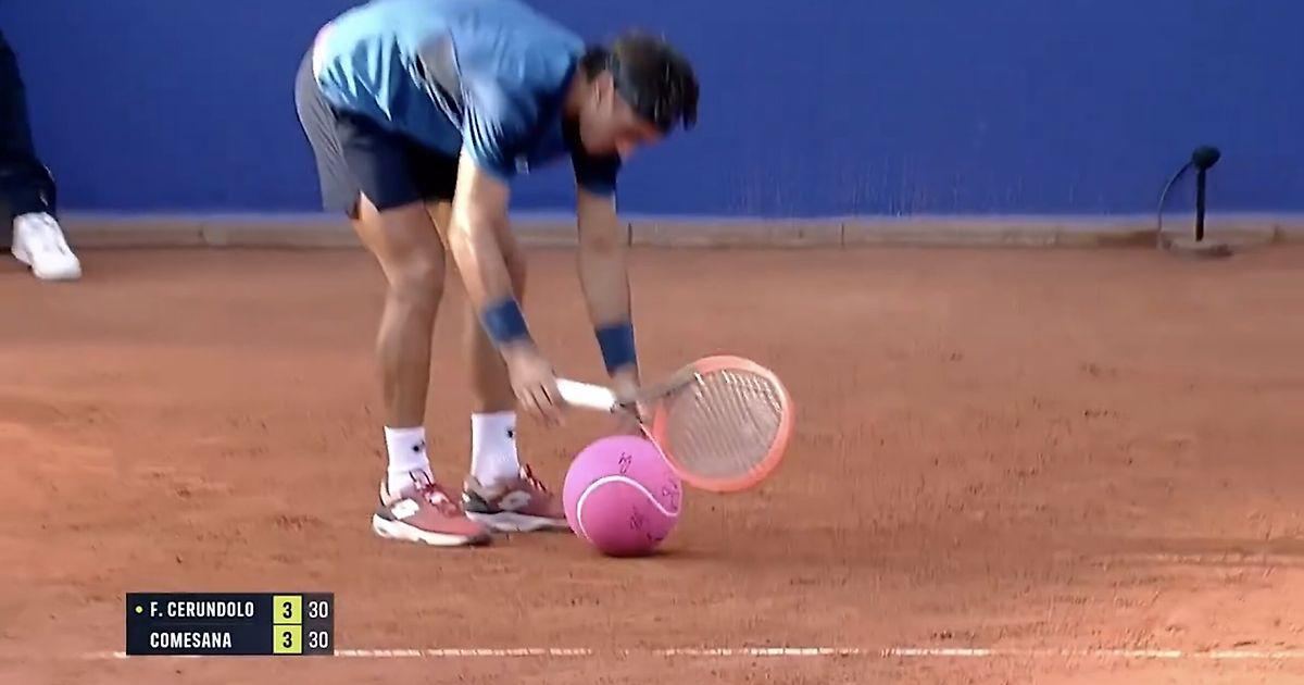 Во время розыгрыша в матче Серундоло и Комесаньи на корт упал мяч для автографов