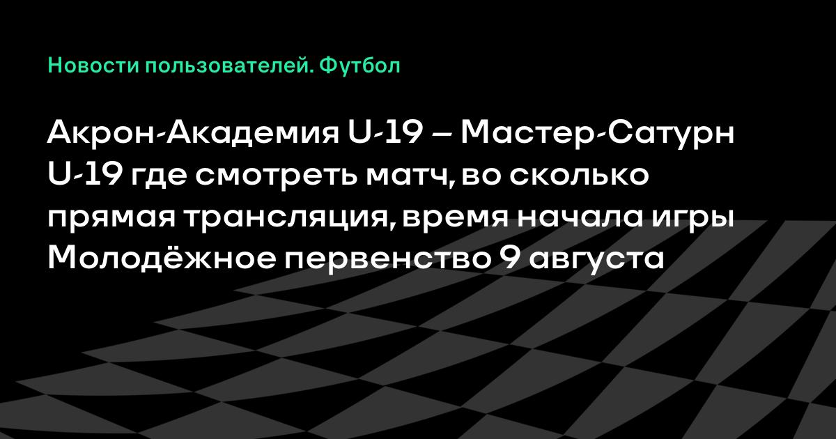 Акрон-Академия U-19 – Мастер-Сатурн U-19 где смотреть матч, во сколько прямая трансляция, время начала игры Молодёжное первенство 9 августа