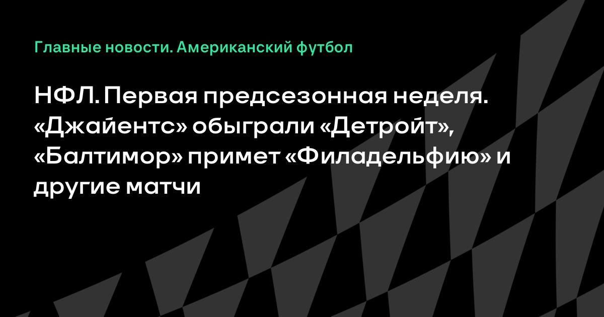 НФЛ. Первая предсезонная неделя. «Джайентс» обыграли «Детройт», «Балтимор» примет «Филадельфию» и другие матчи