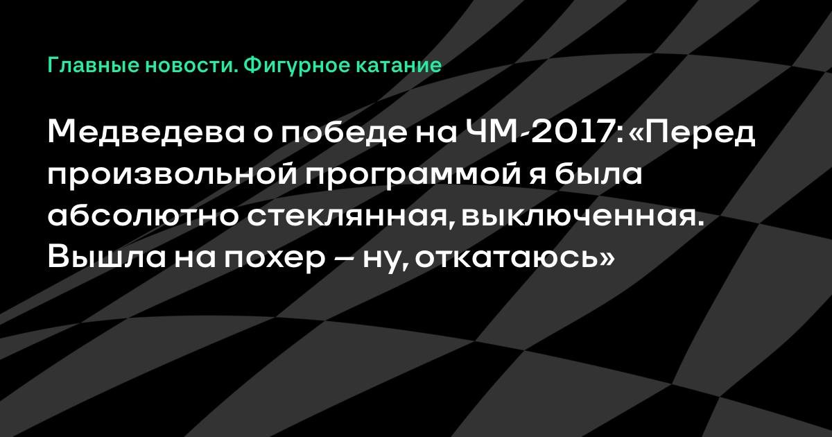 Медведева о победе на ЧМ-2017: «Перед произвольной программой я была абсолютно стеклянная, выключенная. Вышла на похер – ну, откатаюсь»
