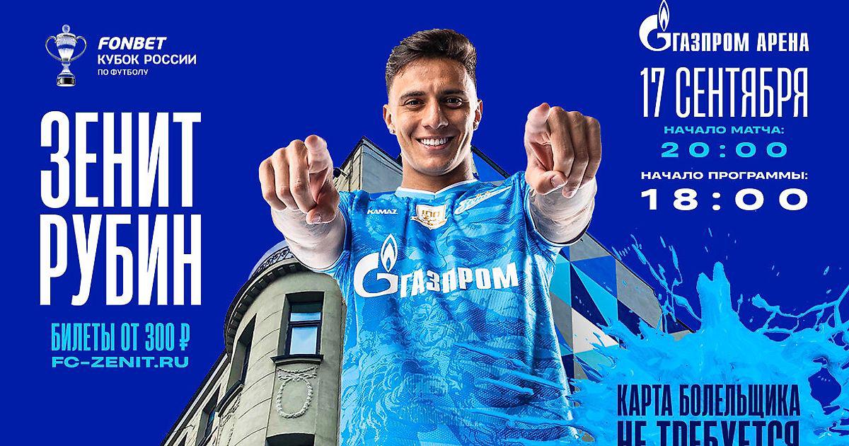 «Зенит» принимает «Рубин». Поддержите петербуржцев в домашнем кубковом матче!