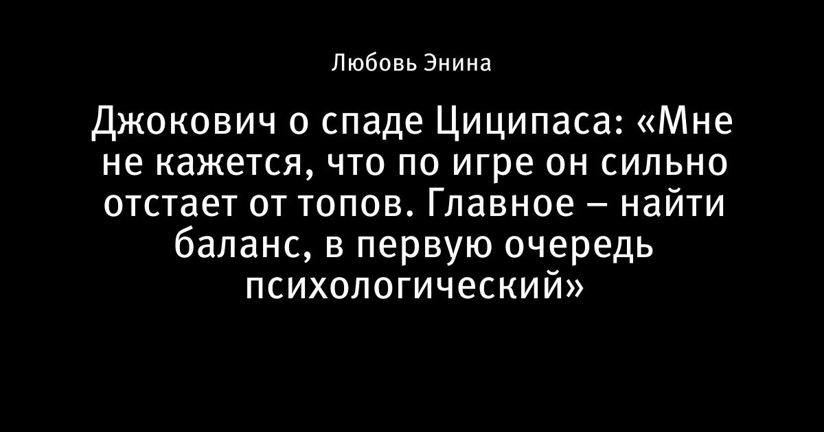 Джокович о спаде Циципаса: «Мне не кажется, что по игре он сильно отстает от топов. Главное – найти баланс, в первую очередь психологический»