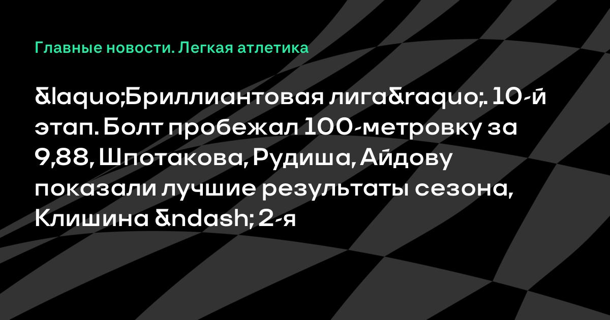 «Бриллиантовая лига». 10-й этап. Болт пробежал 100-метровку за 9,88, Шпотакова, Рудиша, Айдову показали лучшие результаты сезона, Клишина – 2-я