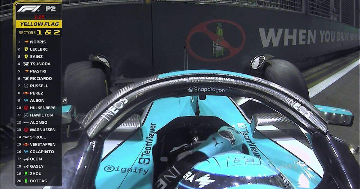 Расселл столкнулся со стеной во второй практике в Сингапуре .