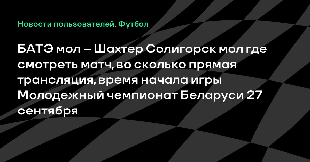 БАТЭ мол – Шахтер Солигорск мол где смотреть матч, во сколько прямая трансляция, время начала игры Молодежный чемпионат Беларуси 27 сентября
