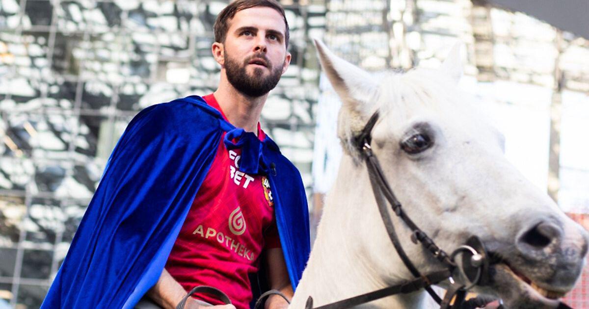 В видеоролике «Миралем Пьянич снова на коне» ЦСКА рассказал об игре футболиста за топ-клубы и показал его в плаще на белом коне.