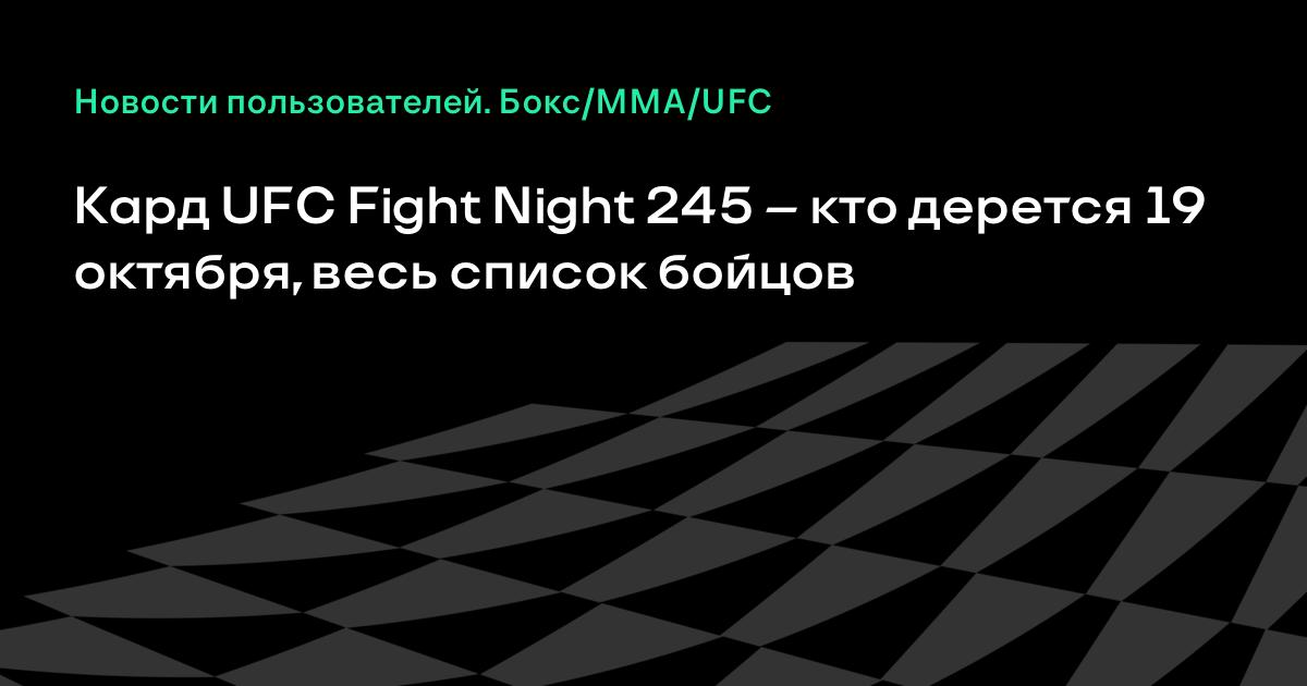Кард UFC Fight Night 245 – кто дерется 19 октября, весь список бойцов