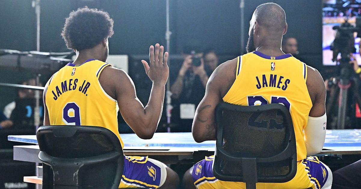 Звездный форвард «Лейкерс» Леброн Джеймс опубликовал в соцсети фотографию с медиа-дня, на которой он дает совместное интервью с сыном Бронни.