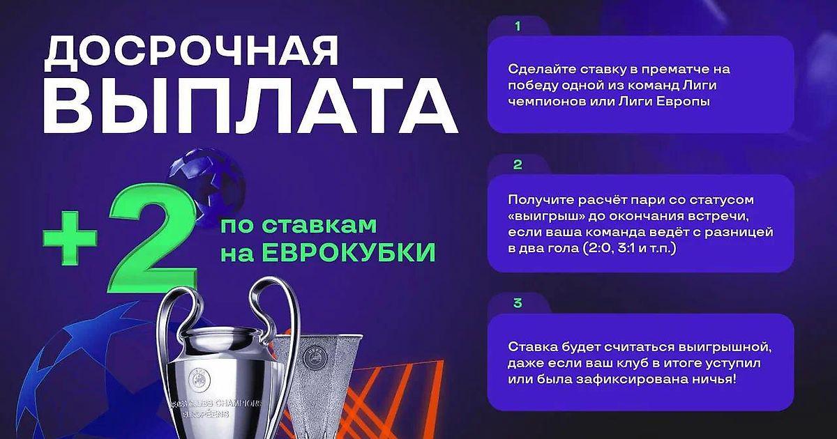 Досрочная выплата +2 от Лиги Ставок: участники выиграли 49 млн рублей в первом туре Еврокубков