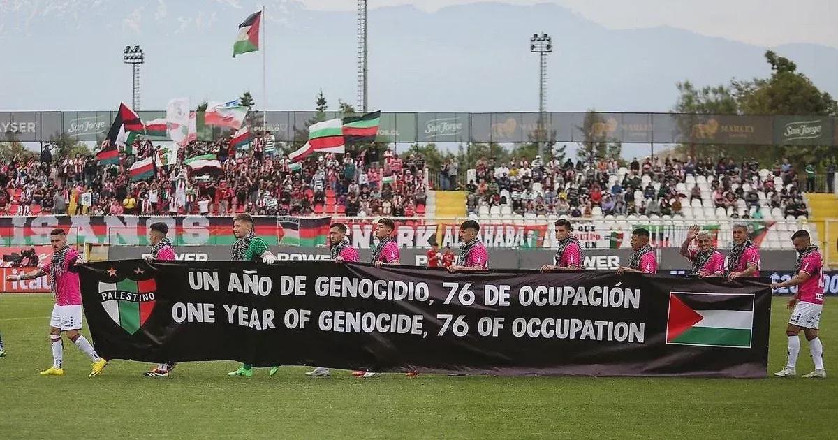 Футболисты «Палестино» вынесли политический баннер на матч лиги Чили.