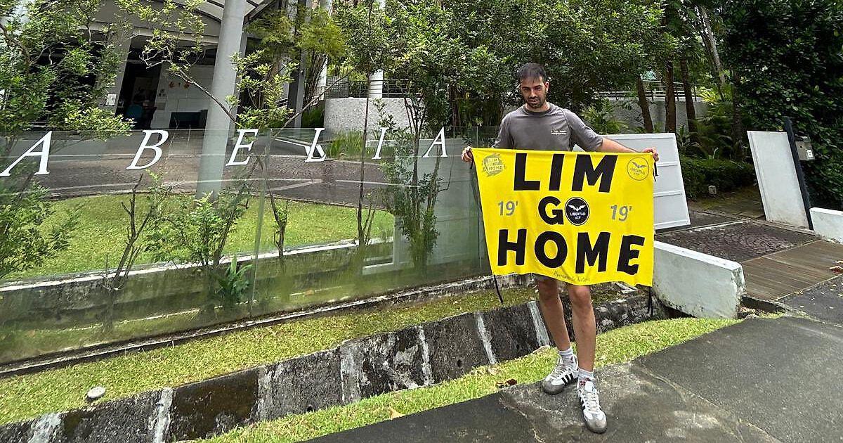 У фаната «Валенсии» и его жены в Сингапуре забрали паспорта и запретили покидать отель. Болельщик наклеил на дверь дома владельца клуба Лима стикер с призывом уйти