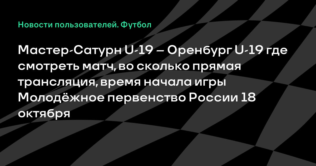 Мастер-Сатурн U-19 – Оренбург U-19 где смотреть матч, во сколько прямая трансляция, время начала игры Молодёжное первенство России 18 октября