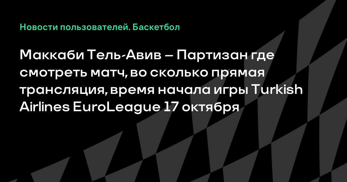 Маккаби Тель-Авив – Партизан где смотреть матч, во сколько прямая трансляция, время начала игры Turkish Airlines EuroLeague 17 октября