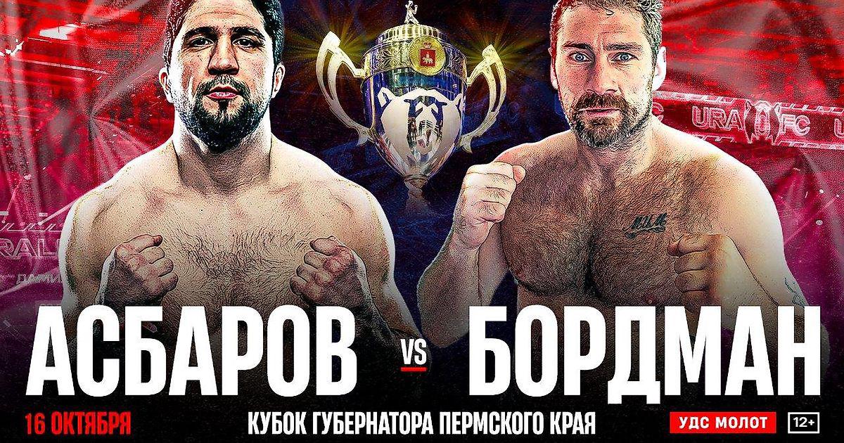 16 октября в Перми прошел турнир Ural FC 8. В главном событии встретились тяжеловесы Сослан Асбаров и Роберт Бордман.