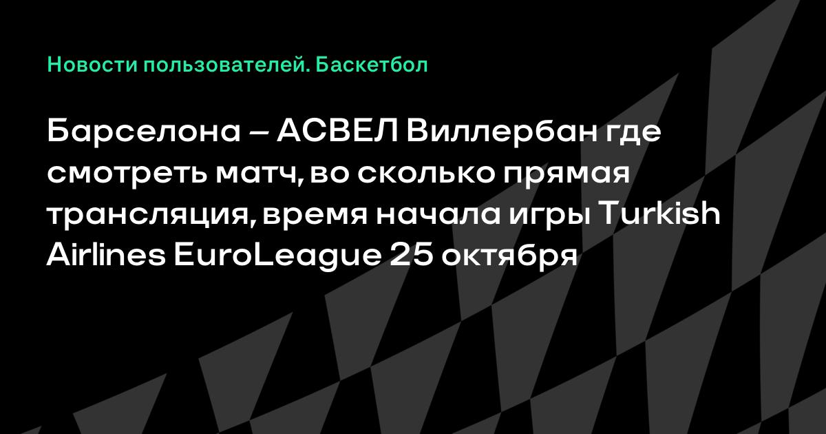 Барселона – АСВЕЛ Виллербан где смотреть матч, во сколько прямая трансляция, время начала игры Turkish Airlines EuroLeague 25 октября