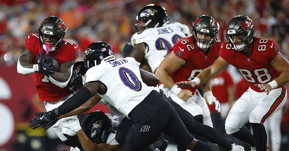 В результате захвата вывих голеностопа заработал ресивер Крис Годвин. После матча стало известно, что игрок уже не вернется на поле в этом сезоне.