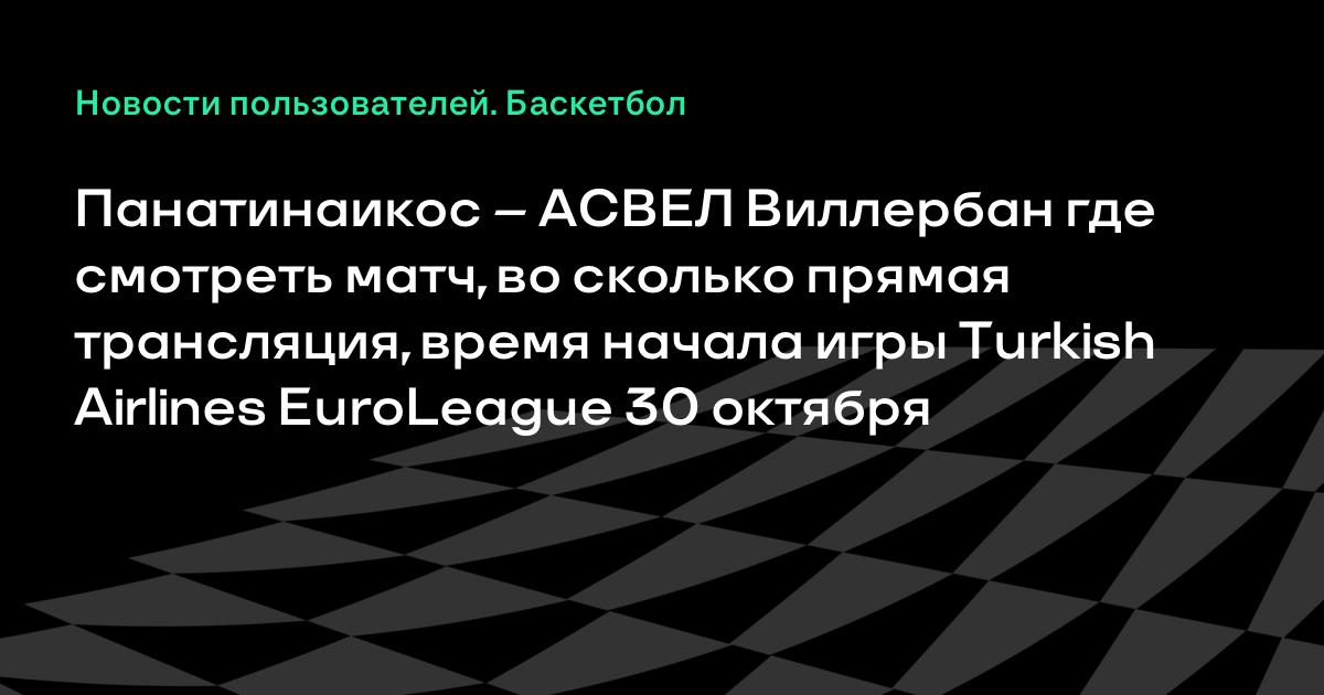 Панатинаикос – АСВЕЛ Виллербан где смотреть матч, во сколько прямая трансляция, время начала игры Turkish Airlines EuroLeague 30 октября