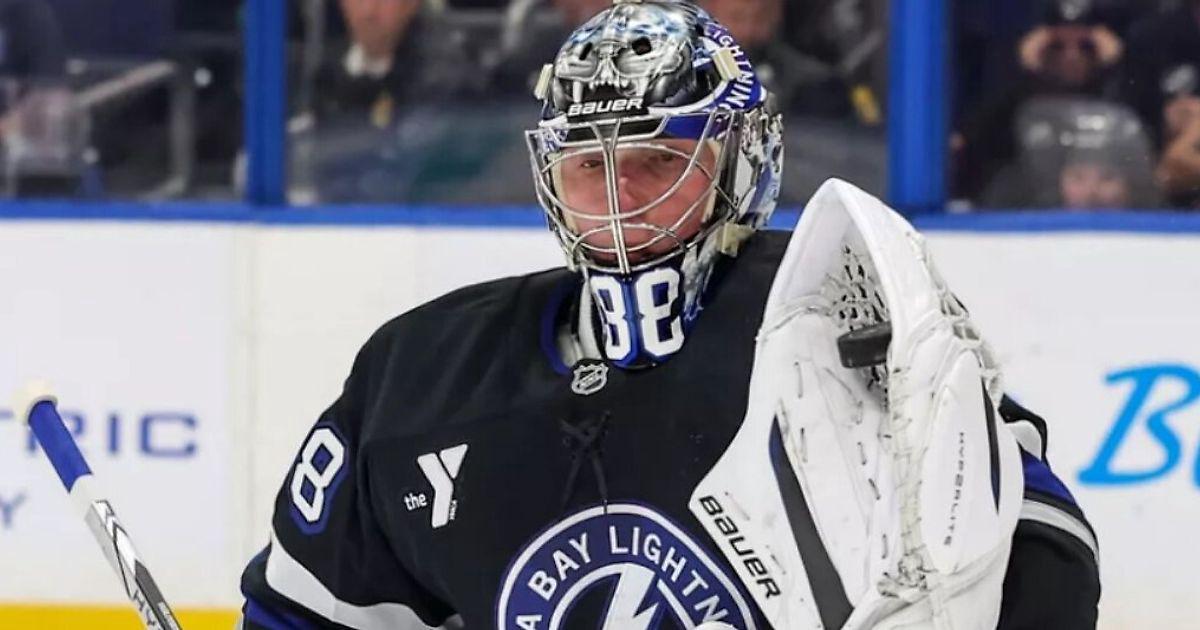 В 8 матчах в текущем сезоне у 30-летнего российского вратаря «Лайтнинг» 5 побед при 90,5% сэйвов и коэффициенте надежности 2,53.
