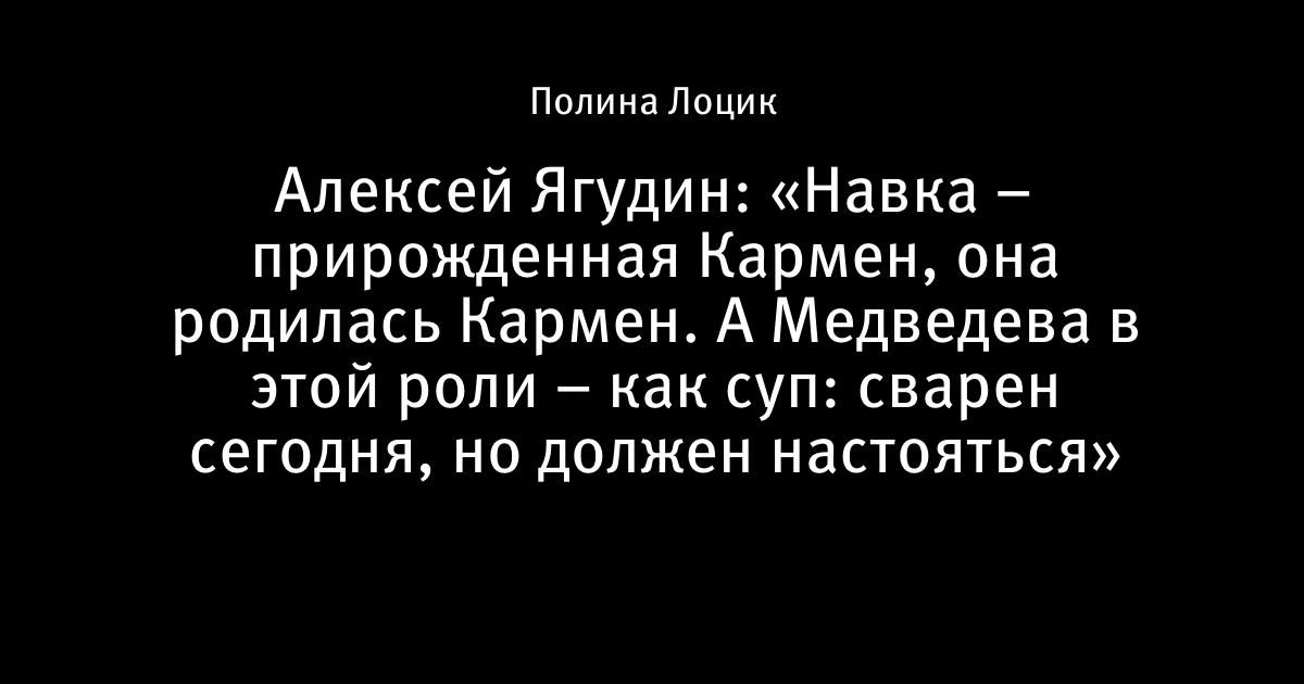 Алексей Ягудин: «Навка – прирожденная Кармен, она родилась Кармен. А Медведева в этой роли – как суп: сварен сегодня, но должен настояться»