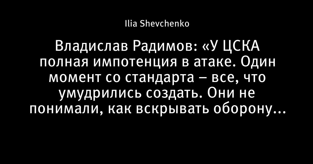 Владислав Радимов: «У ЦСКА полная импотенция в атаке. Один момент со стандарта – все, что умудрились создать. Они не понимали, как вскрывать оборону «Спартака»