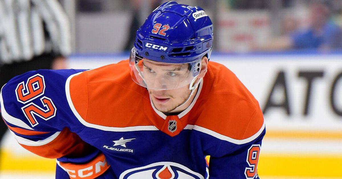 Форвард «Эдмонтона» вышел на матч регулярного чемпионата НХЛ с «Флэймс» (4:2) в звене с Леоном Драйзайтлем и Виктором Арвидссоном.