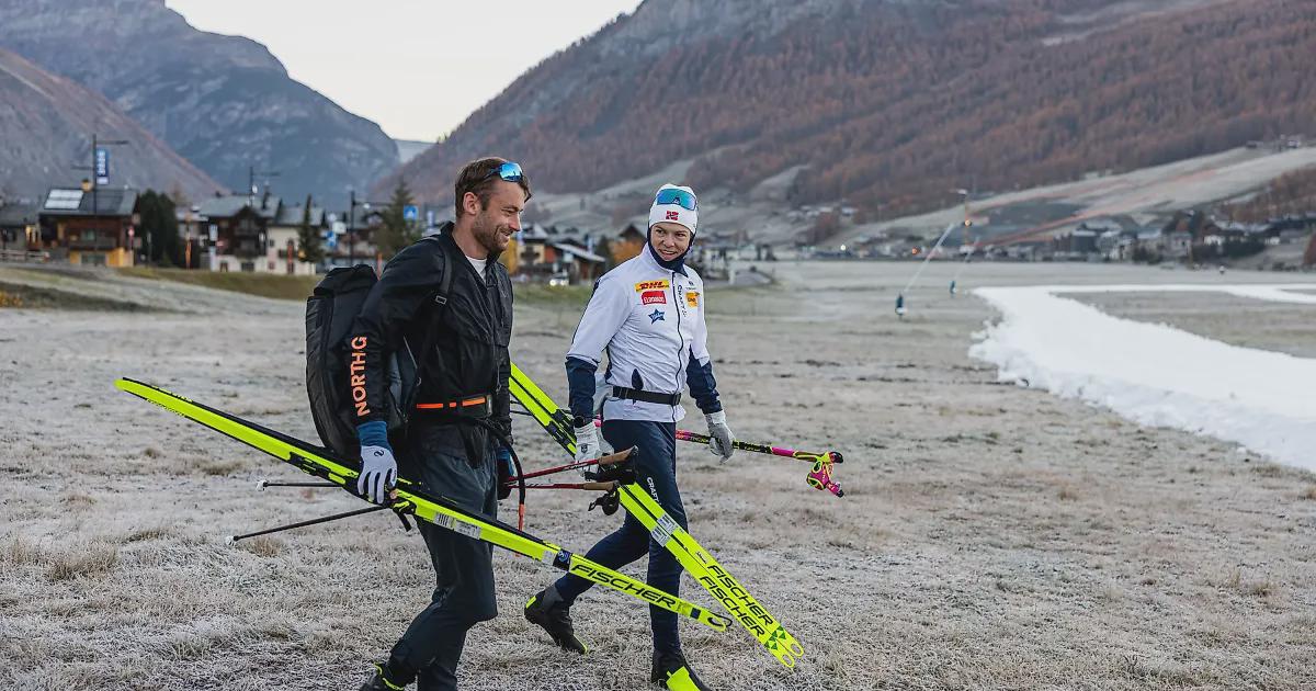 Норвежские лыжники Петтер Нортуг и Йоханнес Клэбо вместе тренируются в Ливиньо.