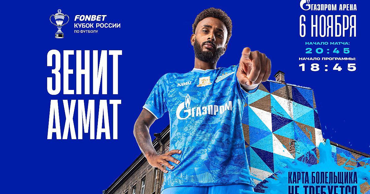 «Зенит» сыграет с «Ахматом». Сине-бело-голубые, поддержите команду в домашнем кубковом матче!