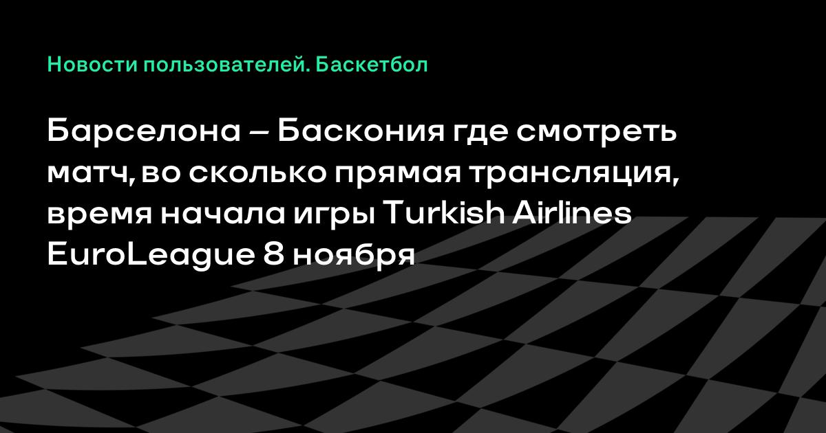 Барселона – Баскония где смотреть матч, во сколько прямая трансляция, время начала игры Turkish Airlines EuroLeague 8 ноября