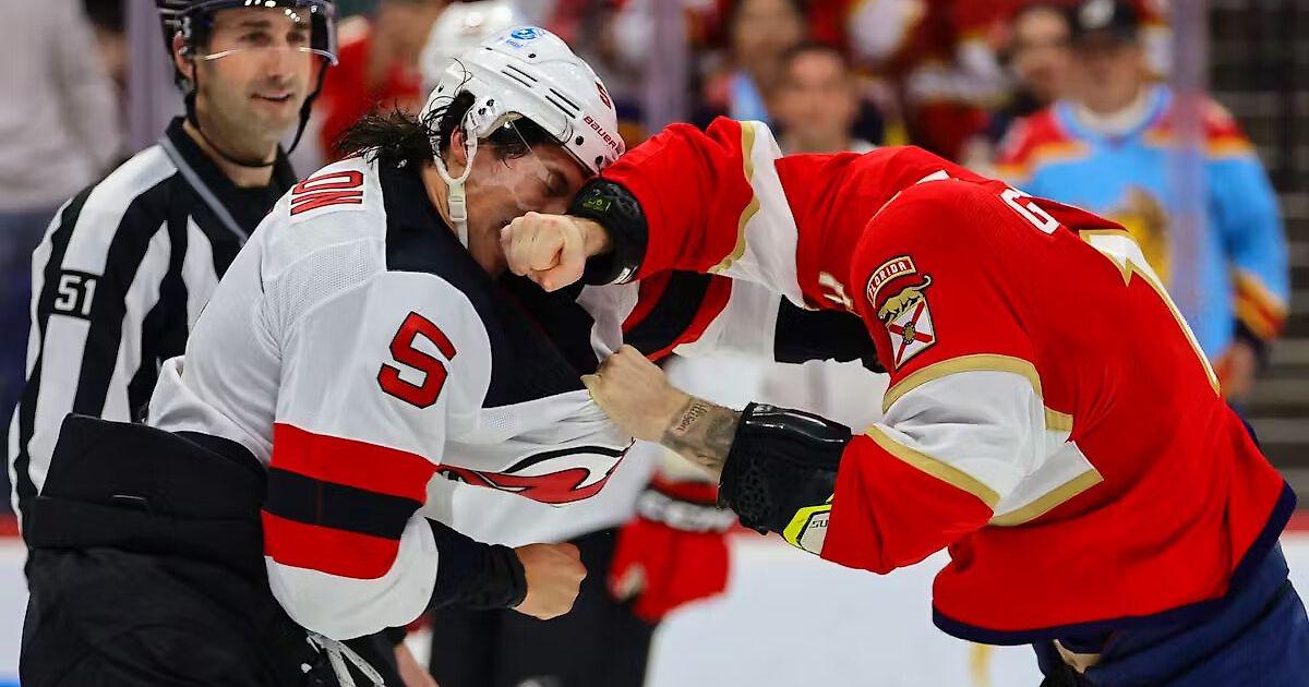 Гаджович и Диллон подрались в матче «Флориды» с «Нью-Джерси». Каждый нанес более 20 ударов за 30 секунд