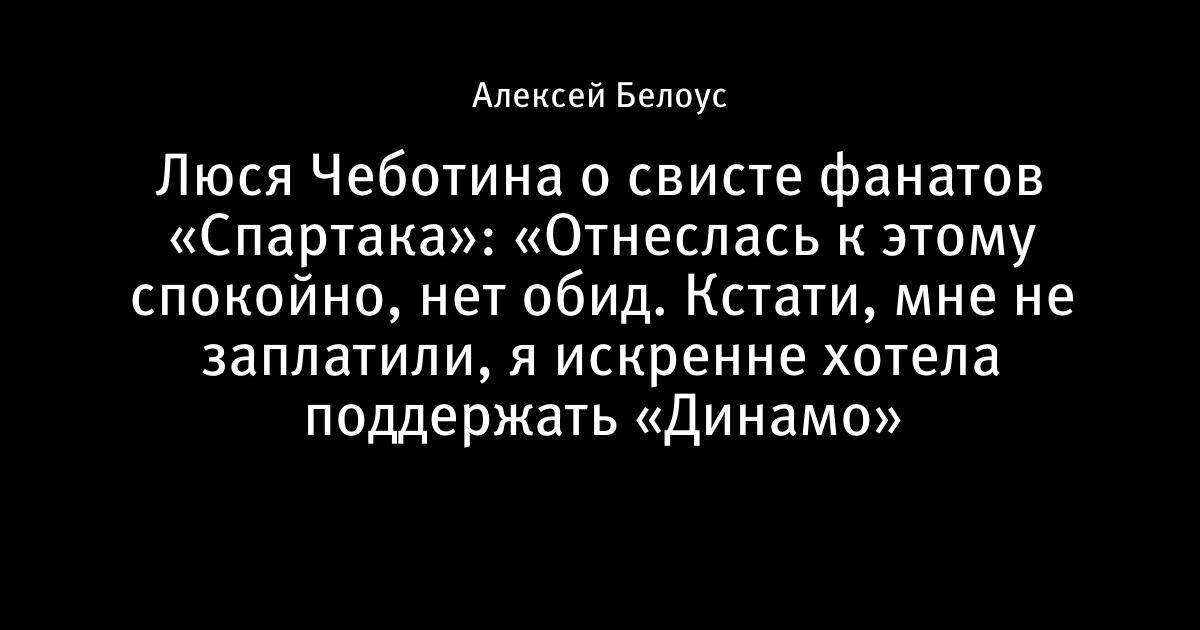Люся Чеботина о свисте фанатов «Спартака»: «Отнеслась к этому спокойно, нет обид. Кстати, мне не заплатили, я искренне хотела поддержать «Динамо»