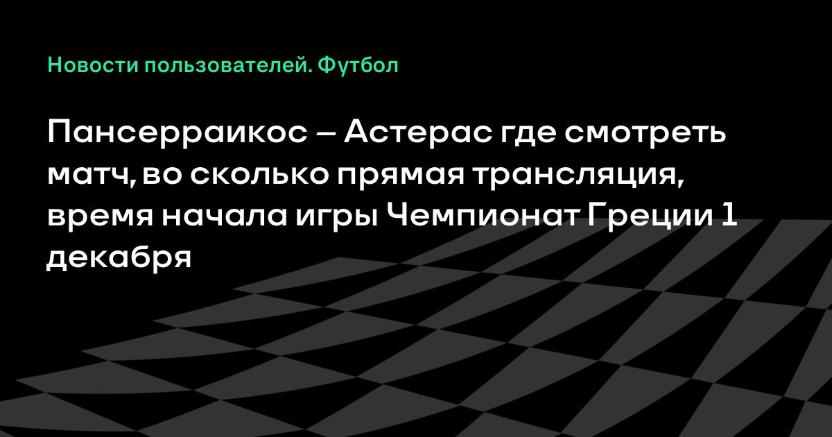 Пансерраикос – Астерас где смотреть матч, во сколько прямая трансляция, время начала игры Чемпионат Греции 1 декабря