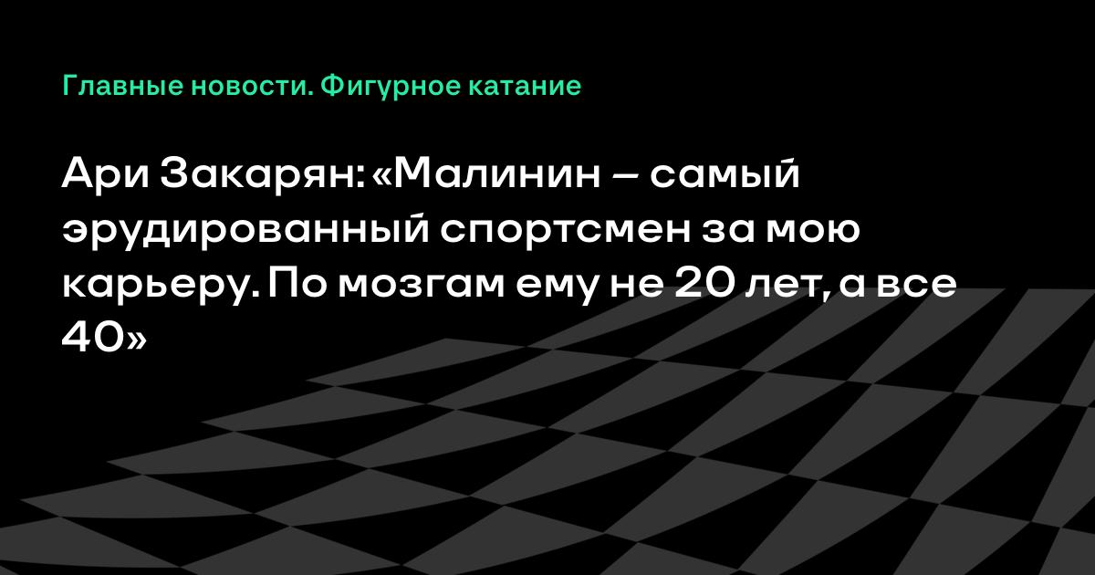 Ари Закарян: «Малинин – самый эрудированный спортсмен за мою карьеру. По мозгам ему не 20 лет, а все 40»
