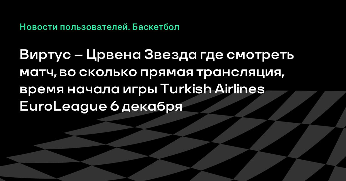 Виртус – Црвена Звезда где смотреть матч, во сколько прямая трансляция, время начала игры Turkish Airlines EuroLeague 6 декабря