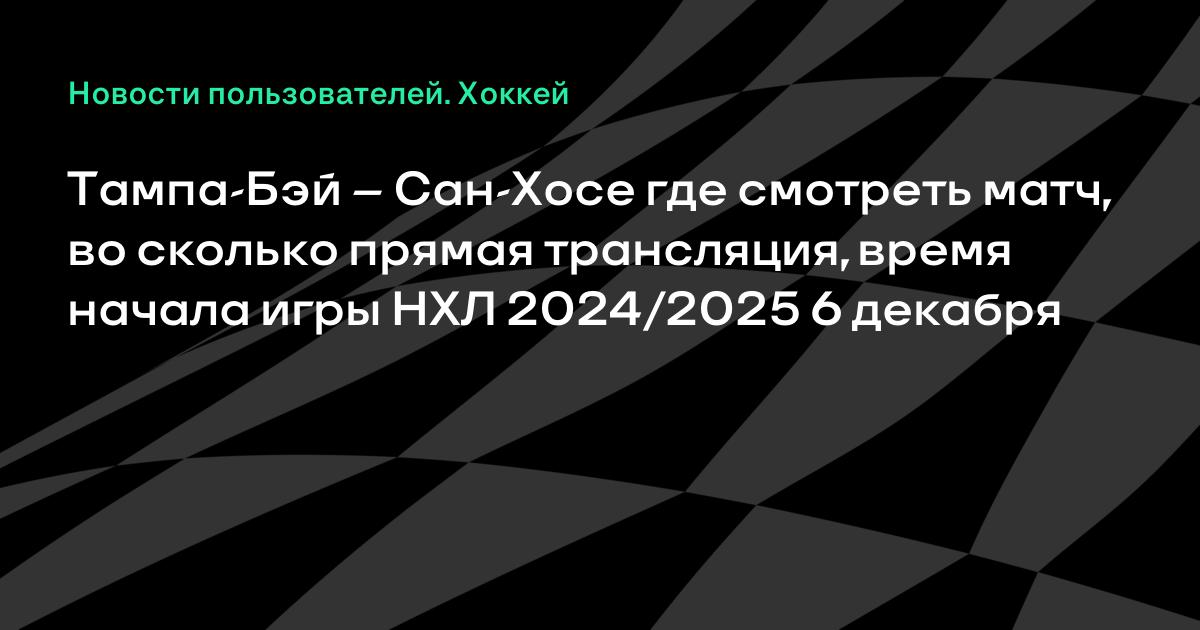 Тампа-Бэй – Сан-Хосе где смотреть матч, во сколько прямая трансляция, время начала игры НХЛ 2024/2025 6 декабря