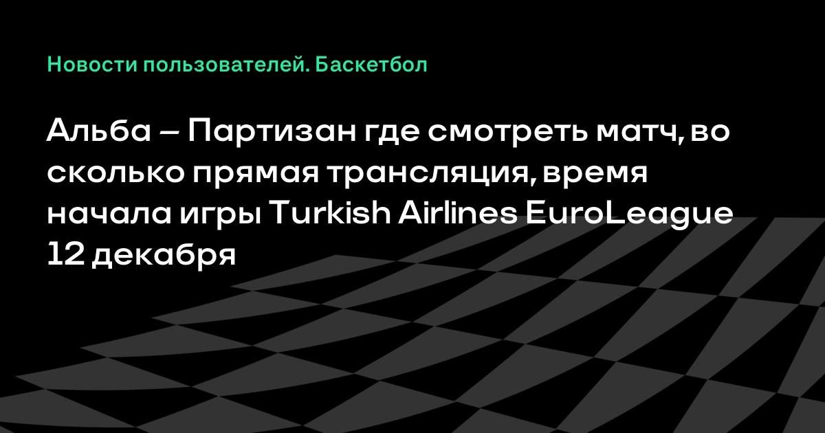 Альба – Партизан где смотреть матч, во сколько прямая трансляция, время начала игры Turkish Airlines EuroLeague 12 декабря